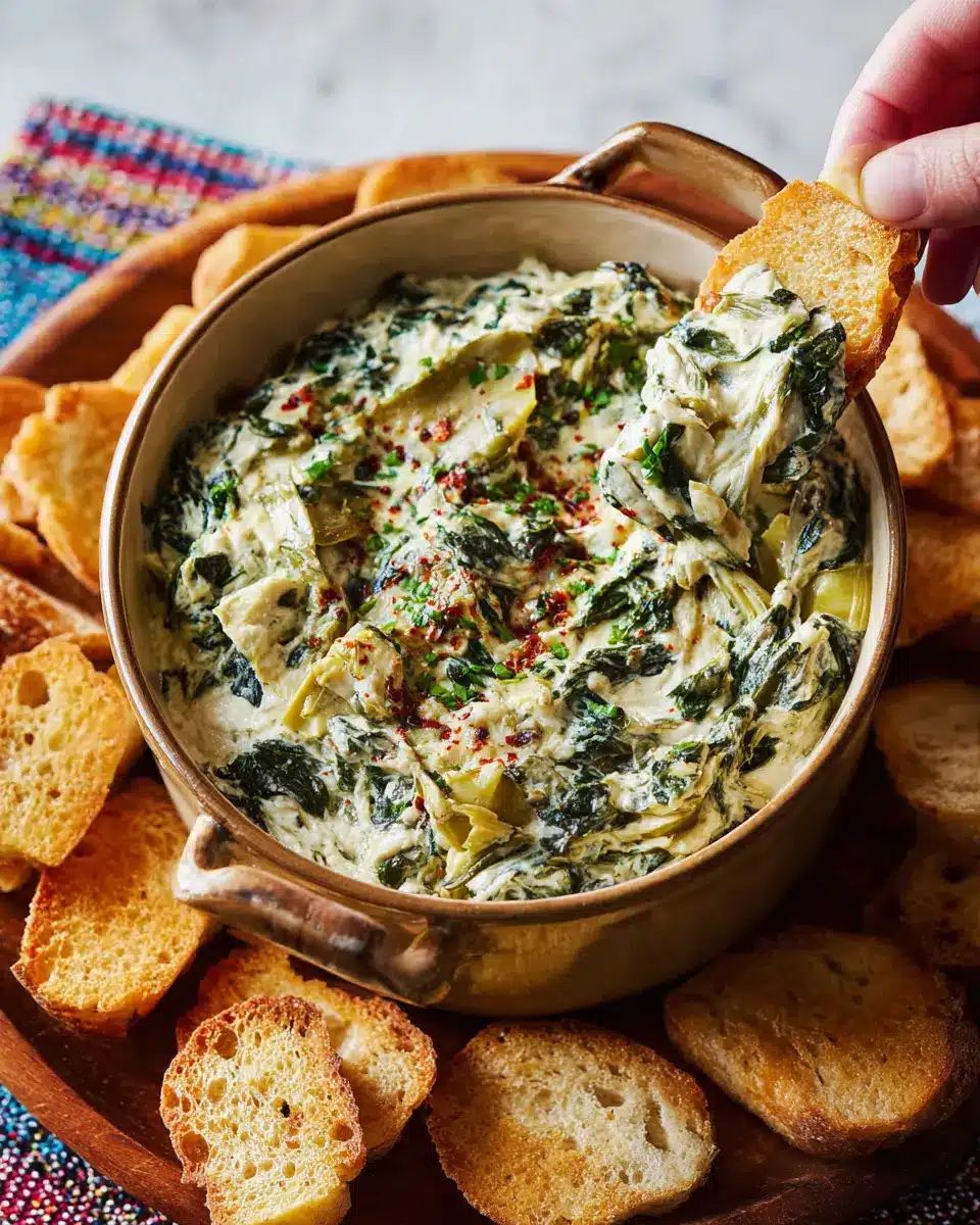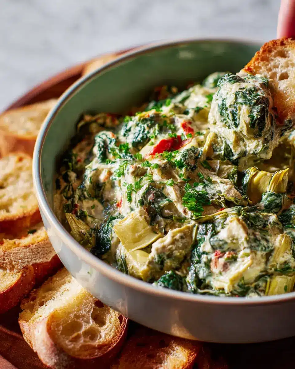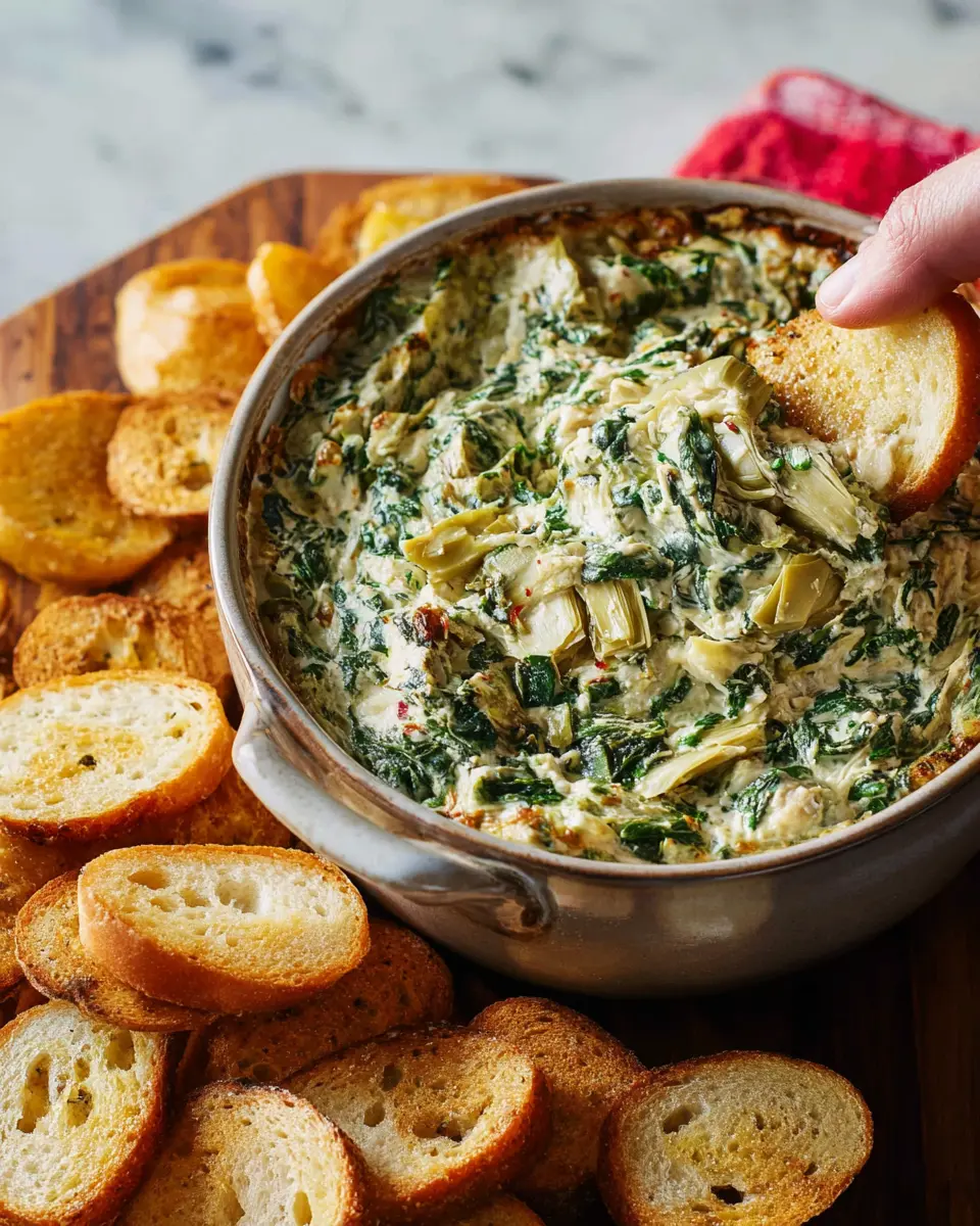 Packed with essential nutrients, this dip is rich in vitamins A, C, and K from spinach, along with potassium and iron from artichokes. Each serving provides a healthy boost to your diet—ideal for those mindful of their nutrition. To learn more about the benefits of spinach, check out this source.