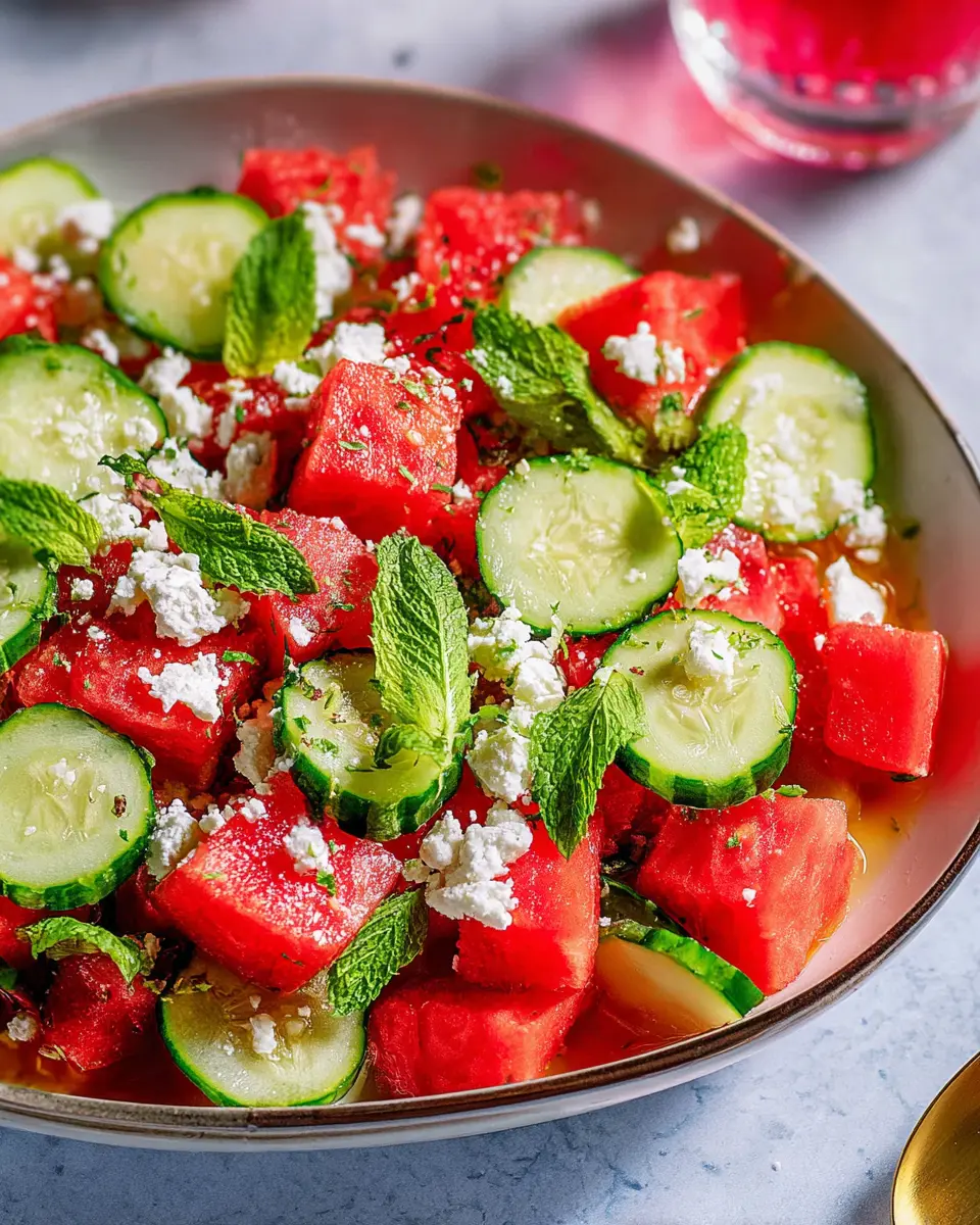 In conclusion, this watermelon salad with feta delivers a refreshing combination of flavors and textures, ideal for light lunches or summer gatherings. The sweet watermelon pairs beautifully with creamy feta and crisp cucumber, while the honey-lime dressing adds the perfect finishing touch. Enjoy the burst of freshness!